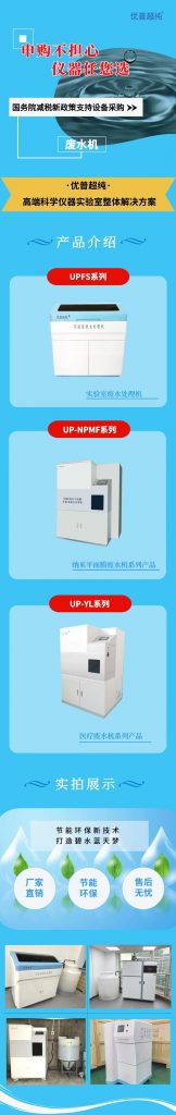 目前,優(yōu)浦達(dá)生產(chǎn)的UP系列實(shí)驗(yàn)室廢水處理系統(tǒng)主要有:UPFS系列、UP-NPMF系列、UPYL系列等一體化實(shí)驗(yàn)室廢水處理系統(tǒng)。自動(dòng)化程度高、占地面積小、操作管理簡(jiǎn)便且無需專人值守,并且廣泛適用于高等院校、科研院所、環(huán)境檢測(cè)、疾控中心、石油化工、醫(yī)療機(jī)構(gòu)、企業(yè)等行業(yè)實(shí)驗(yàn)室、化驗(yàn)室廢水處理。